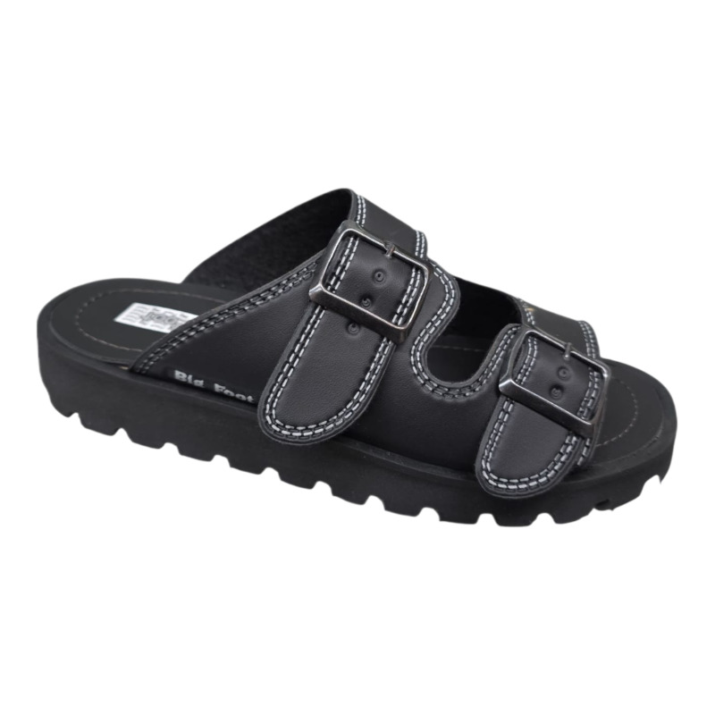 Sandalia anatmica con doble hebilla regulable, capellada sinttica y suela robusta de EVA. Ofrece estabilidad, durabilidad y confort para uso diario.