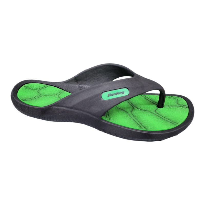 Ojota DONKEY modelo 303 con base anatmica, plantilla texturada en color verde y tira negra. Cmoda, liviana y resistente para uso diario.