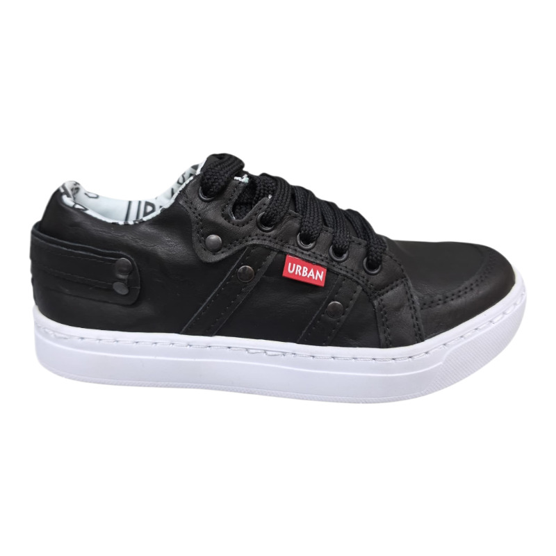 Zapatilla urbana de diseño moderno en color negro, ideal para uso diario. Confeccionada en material sintético resistente, combina durabilidad y estilo. Su suela blanca aporta contraste y comodidad en cada paso. Versátil para looks casuales o urbanos.