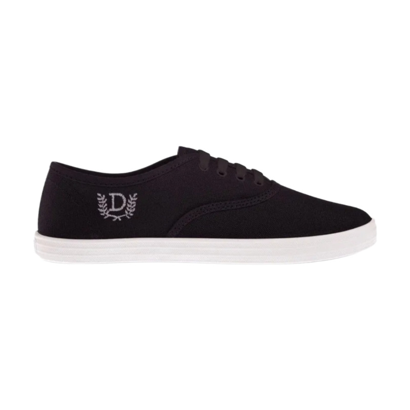 Zapatilla DELI modelo 350 en color negro con suela blanca, diseo clsico en lona y ajuste con cordones para uso cotidiano.