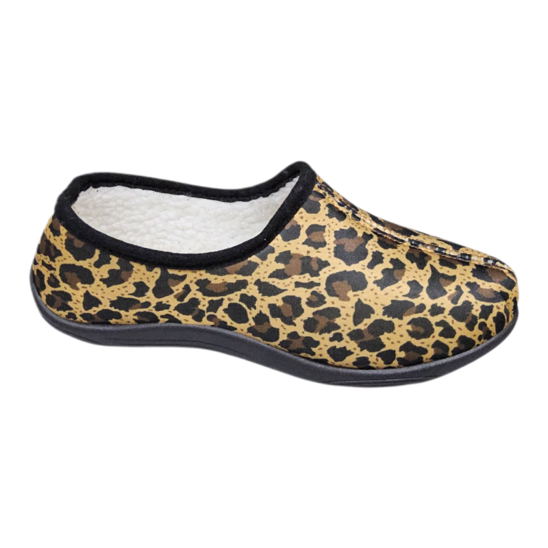 Pantufla cerrada Faran modelo 155 con diseo animal print, interior abrigado y base antideslizante.