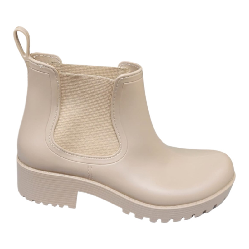 Bota de lluvia Giovanna modelo 02 en color beige, impermeable y prctica, con diseo moderno para uso diario en climas hmedos.
