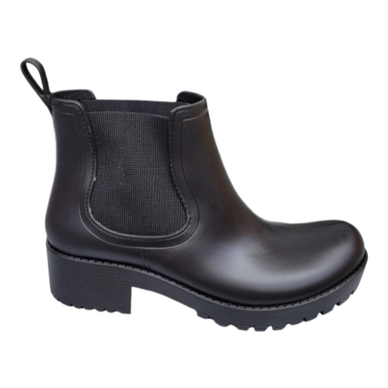 Bota de lluvia Giovanna modelo 02 en color negro, impermeable, cmoda y resistente, ideal para uso urbano en das lluviosos.
