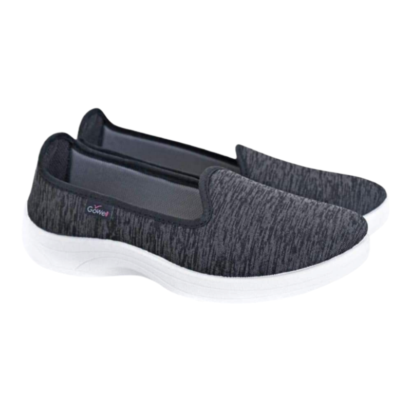 Calzado Gowell modelo 470 color negro jaspeado, liviano y cmodo, con base blanca y calce flexible.