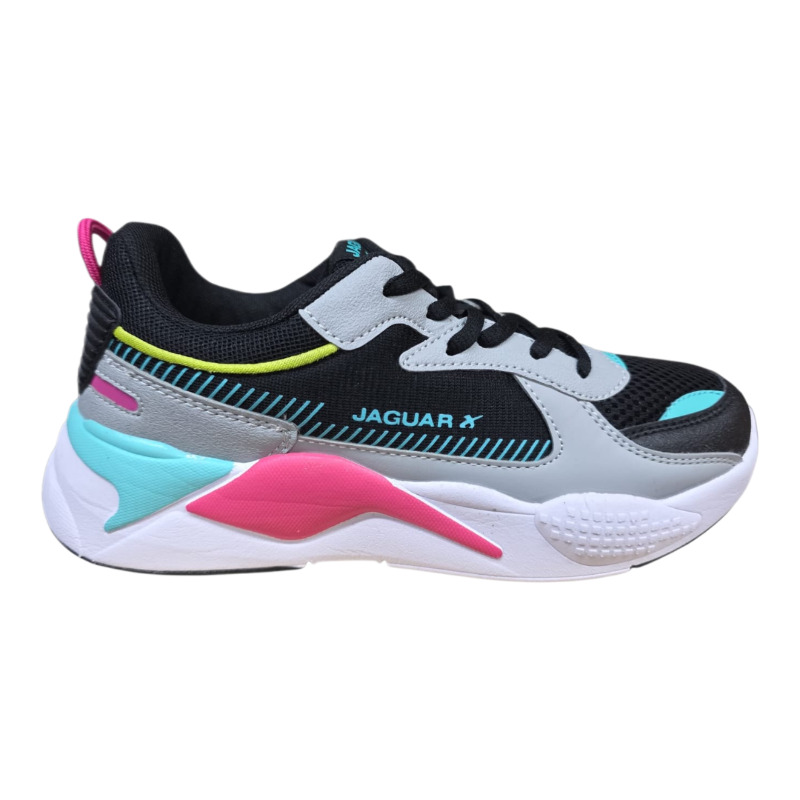 Zapatilla deportiva Jaguar de estilo urbano con diseño moderno y detalles en colores contrastantes. Su capellada combina materiales textiles y sintéticos que brindan buena respirabilidad y resistencia. La suela deportiva proporciona amortiguación y estabilidad al caminar. Ideal para uso diario y looks casuales con estilo.