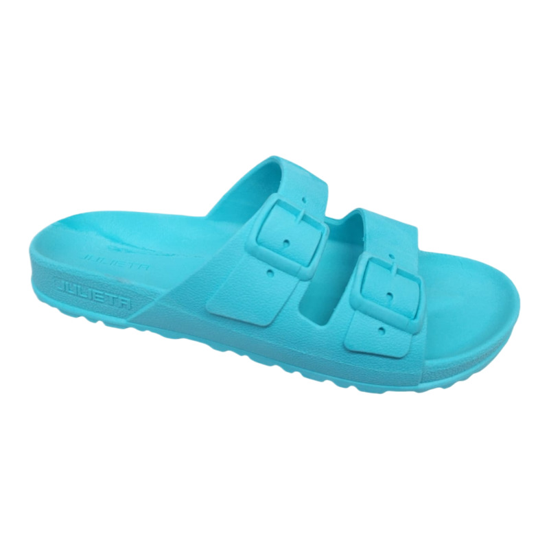 Sandalia tipo Birkenstock Julieta en color celeste, ideal para verano