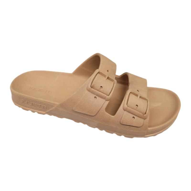 Sandalia tipo Birkenstock Julieta en color arena, plantilla anatmica y doble tira con hebilla