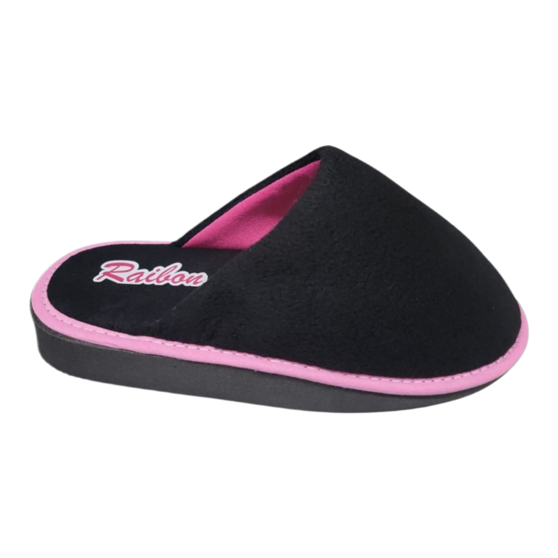 Chinela RAIBON Polar negra con vivo rosa, abrigada