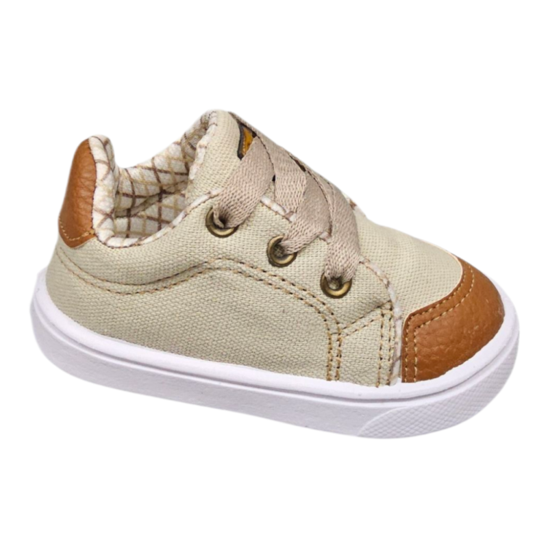 Zapatilla infantil Heydey modelo 213 en tono beige, diseo clsico con cordones y puntera reforzada.