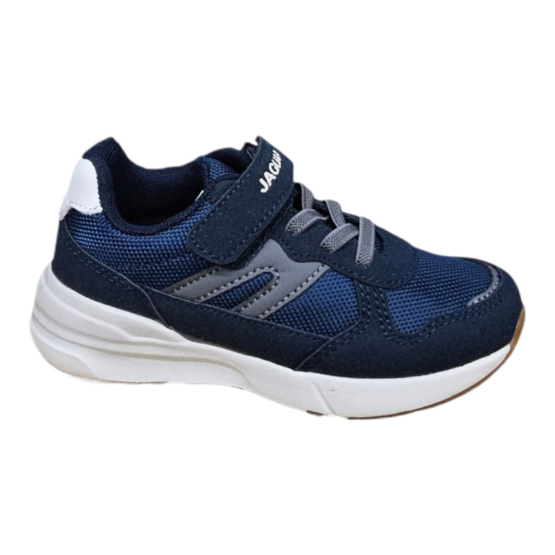 Zapatilla Jaguar infantil con capellada textil y refuerzos sintéticos. Suela liviana con buena amortiguación para brindar comodidad en uso diario y actividades escolares.