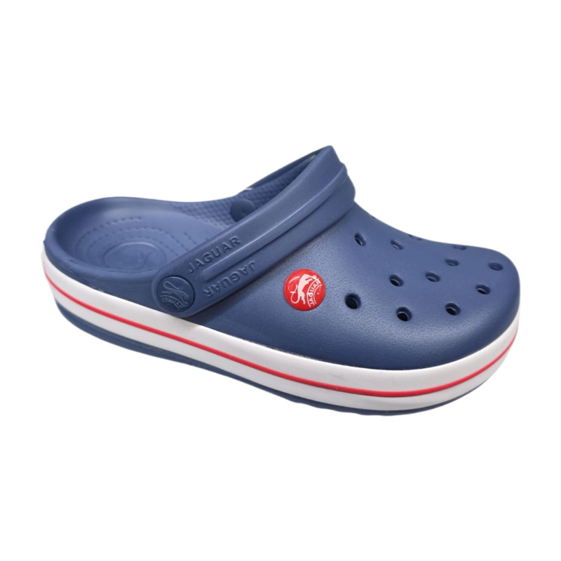 Zueco Jaguar modelo 7254 color azul, liviano y cmodo, con tira trasera y ventilacin superior para uso diario.