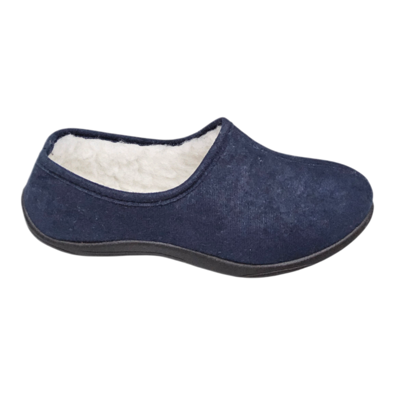 Pantufla Faran modelo 55 en color azul, cerrada y abrigada, ideal para uso interior.