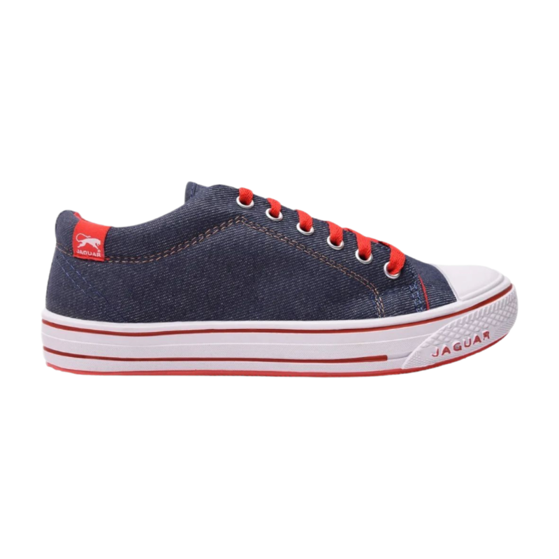 Zapatilla Jaguar modelo 320 en azul con detalles rojos, estilo urbano clsico con cordones y suela reforzada.