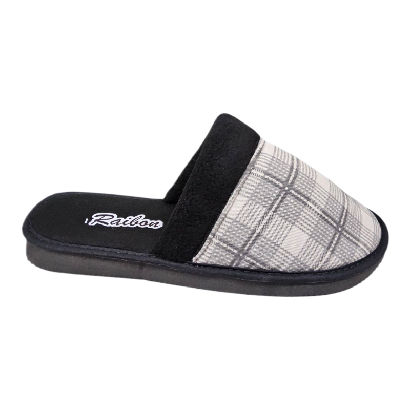 Chinela RAIBON 559 en pao a cuadros gris, suela de goma