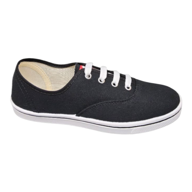 Zapatilla clsica de lona negra con cordones blancos. Diseo cmodo y verstil, ideal para uso diario.