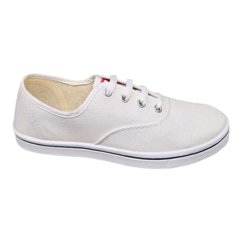 Zapatilla de lona blanca con cordones, liviana y confortable. Estilo clsico para todo uso.